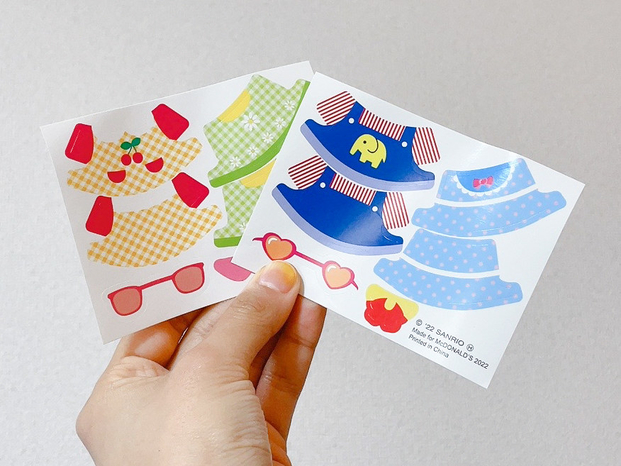 シールはこんな感じで、雰囲気が違うお洋服が4種類と、サングラスやリボンなどのアクセサリーがついています。