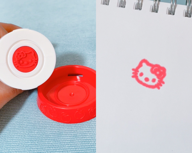 キティちゃんが立っている土台を外すと、スタンプが押せます。