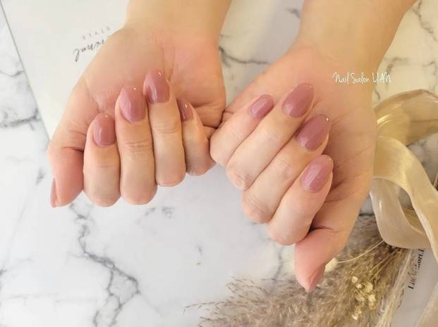 ふんわりミルキーな肌馴染みピンクを、ワンカラーで楽しむシンプルネイルデザインです。
