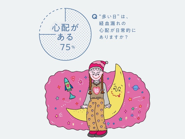7割以上の女性が生理中、経血量の多い日は経血漏れに不安を感じていることが判明。昼夜問わず、様々な場面で思わずヒヤッと…。