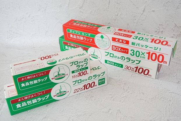 など、大きさや素材ごとにラインアップが豊富。過去にはスライドカッター式のラップも販売されていたという情報もあります。