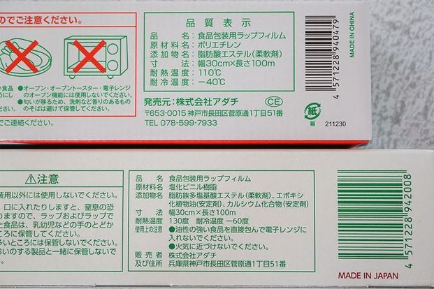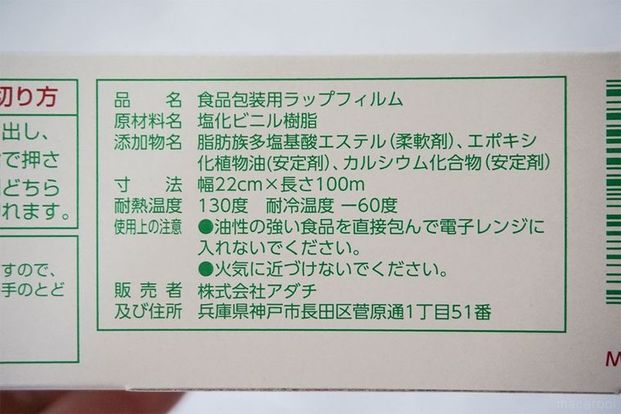 製造元は株式会社アダチ。ラップポリ袋などを製造しており、業務スーパーを展開する株式会社神戸物産と同じく、兵庫県に本社がある会社です。