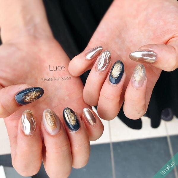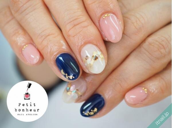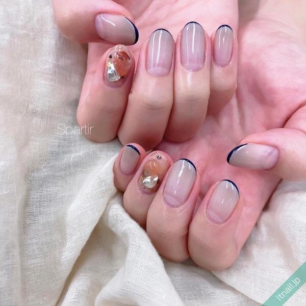 ネイビーのワンカラーネイルは少し重くなりがちなので、春夏はフレンチネイルがおすすめです。ヌーディーカラーをベースに、ネイビーを先端に入れるだけでキレイめな春夏ネイルになります。オフィスネイルにもおすすめ!
