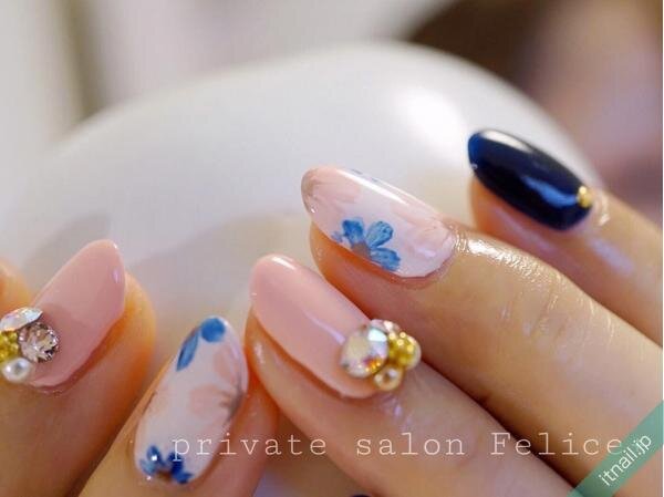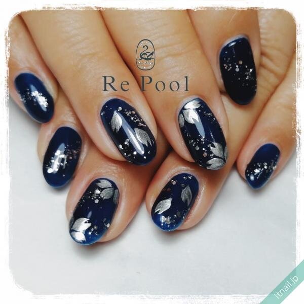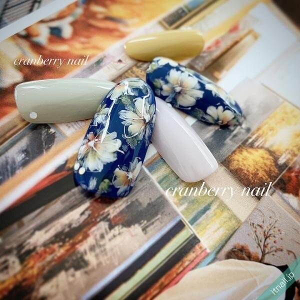 ネイビーとお花の組み合わせが大人可愛いネイル
