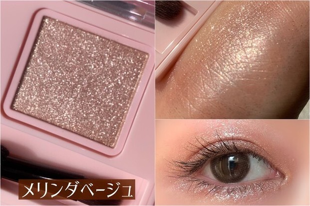 完売が続出している、今注目のアイシャドウ。黄みの少ないベージュブラウンに、まるで宝石を砕いたかのようなラメがぎっしり。単色なのに、カラーとラメを別々に重ねたような不思議な仕上がりで可愛いんです♡