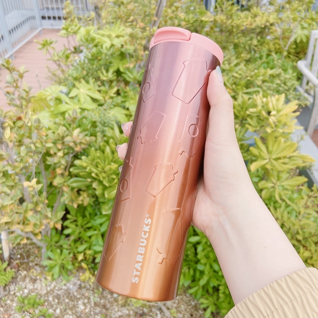 Starbucks Coffee(スターバックスコーヒー)の「ステンレスシリンダータンブラーフラペチーノ473ml」がめっちゃ可愛い!グラデーションカラーがお洒落で、よく見るとフラペチーノがデザインされてるんです!もうめちゃくちゃ好きだわ…!