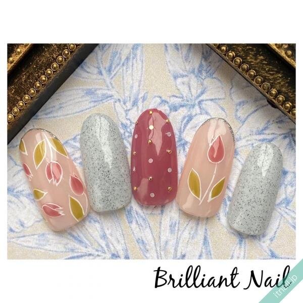 可愛らしいチューリップのネイルも、サンドネイルを入れて甘さ控えめのヘルシーなデザインへ♡自然を感じさせるネイルがナチュラルで可愛いですよね。フェミニンコーデにも、カジュアルコーデにも合わせやすいです。