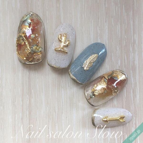 シンプルなサンドネイルも素敵ですが、メタリックパーツを使って存在感たっぷりのサンドネイルにするのもおすすめ♡透明感のある琥珀ネイルと合わせて、よりヘルシーな春夏ネイルにするのも素敵です。