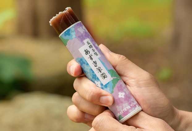 4月下旬から7月初旬には「あずき羊羹」が登場。通常が金時豆の羊羹なので 紫陽花の季節限定の紫の羊羹ということだそう。
