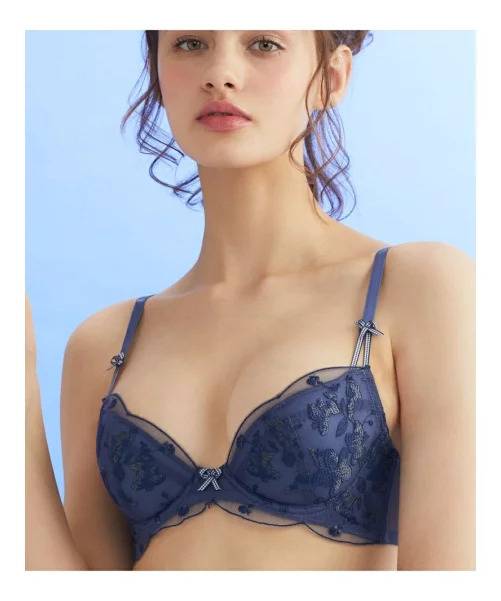 今回は、シックで上品な雰囲気が魅力の、ネイビーカラーのブラジャーをご紹介します。