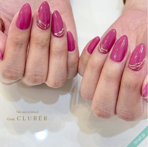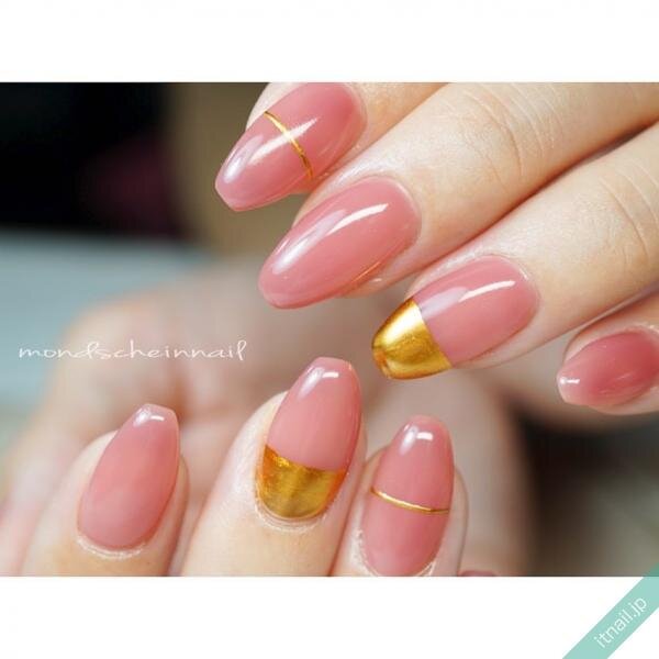 例えば、シンプルなピンクのワンカラーネイルをベースに、ゴールドの曲線を数本アートするデザインはいかがでしょうか。上品なピンクネイルにゴールドのラインがキラリと輝く、お洒落度高めなネイルが完成します。
