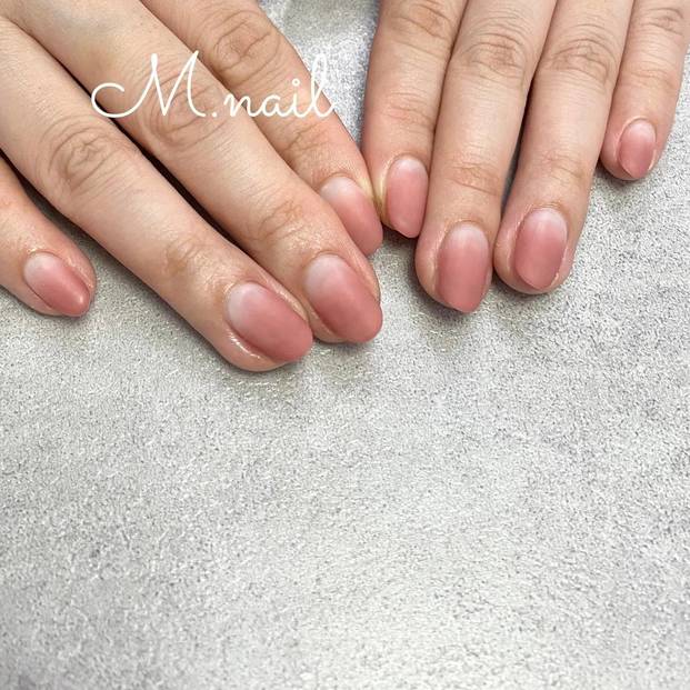 肌に溶け込むようなスモーキーピンクネイルは、指を長く見せてくれる効果が期待できます♡