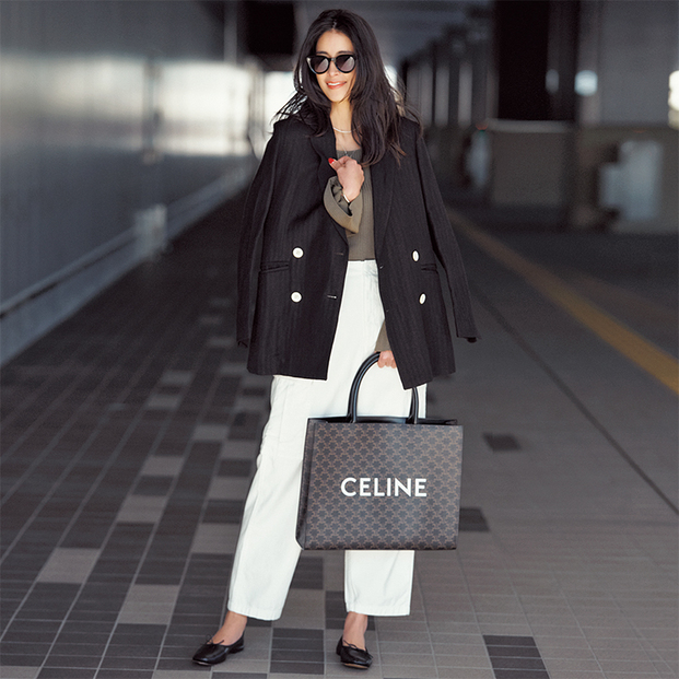 バッグの緊張感がその日の装いをピリッと引き締め、カジュアルにも〝ほどよいきちんと感〟を与えてくれる。トレンドのベイカーパンツとも好相性。