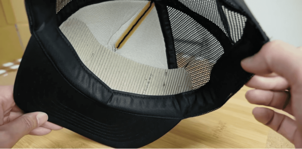 スリーブをハサミでカットして帽子のツバに入れるだけで、収納をするときの型崩れ予防ができます。