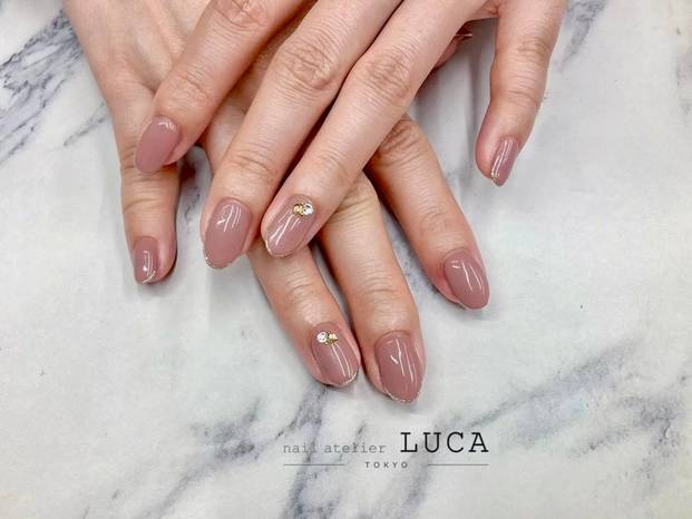 オーロラは肌馴染みのいいスモーキーなピンク系カラーと合わせると、老けて見えない透明感のある手元に。
