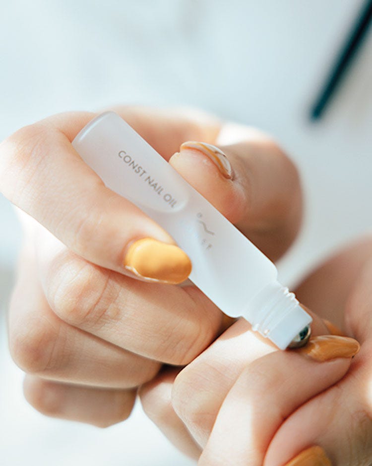 先端まで抜かりなくキレイ、ここが好感度を上げるポイント。ネイルオイルでささくれや乾燥までしっかりケアを。