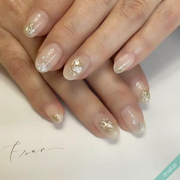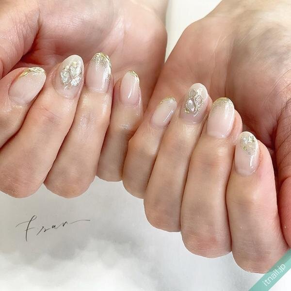 乳白色で作ったグラデーションネイルをベースに、シェルを埋め込むデザインも素敵です。シェルも爪の先端側に入れるようにすると、バランスが良くなります。幻想的な輝きが楽しめておしゃれですよ♡