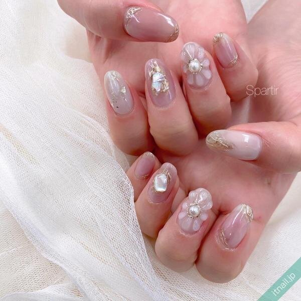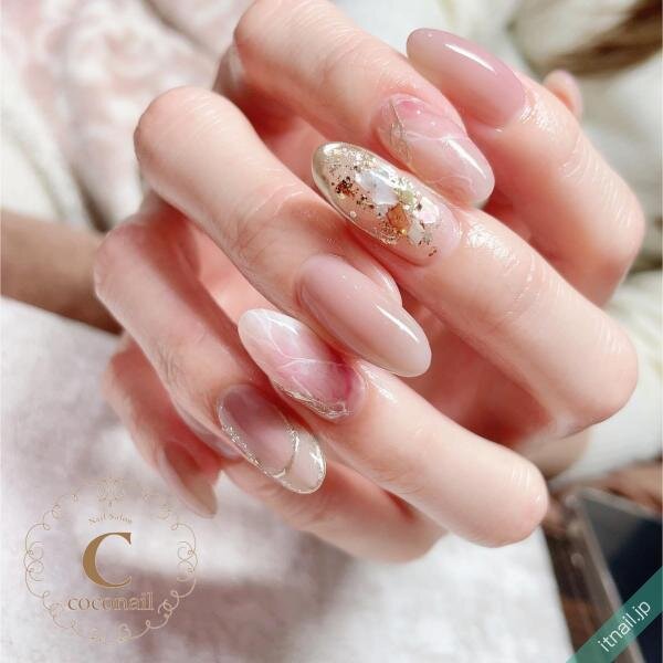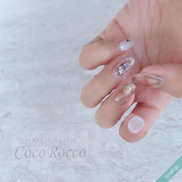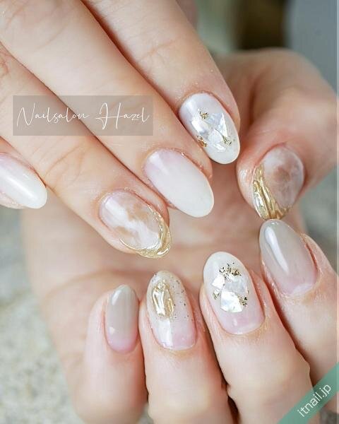 大人女子に人気なのは、乳白色をメインにした天然石ネイルです。上品で高級感のある指先が楽しめますよ♪ほんの少しピンクを足して、可愛らしさのあるシェルネイルにするのもおすすめ!