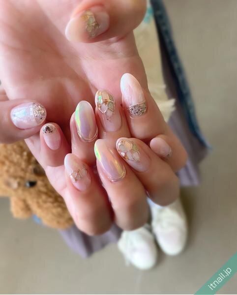シェルの幻想的な輝きが楽しめるグラデーションネイル