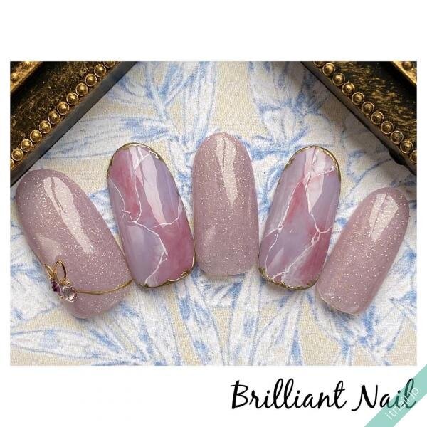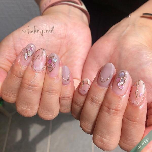 品の良さが増す天然石ネイルも、淡いピンクやパープルを使ってみて♡少しくすみ感のある色にすることで、大人向けの落ち着いたネイルになります。細いメタリックラインなども入れながら、少しレトロな雰囲気を演出するのもおしゃれ!