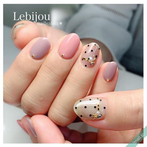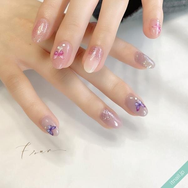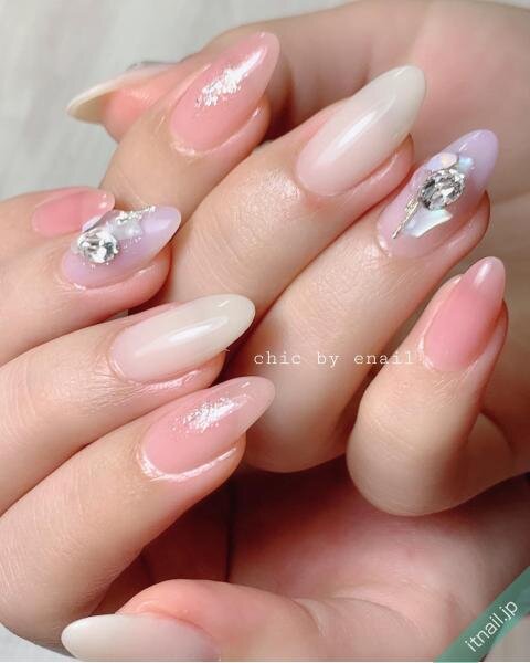 淡いピンクとパープルは、一緒に混ぜてもやもやしたネイルデザインにするのが人気です。爪によってピンクを多めにしたり、パープルを多めにしたりすることで、おしゃれな雰囲気が漂いますよ♪もやもやしたデザインは、注目されているニュアンスネイルのひとつです。