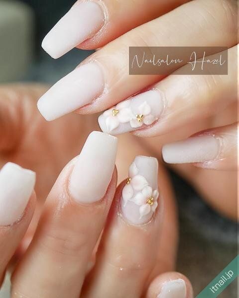 色を変えるのではなく、デザインをプラスしてみるのもおすすめです。中でも人気なのは、可愛らしいお花のネイルデザイン♪シンプルなワンカラーネイルを土台にしてから、立体感のある3Dフラワーで存在感をプラスしてみて!