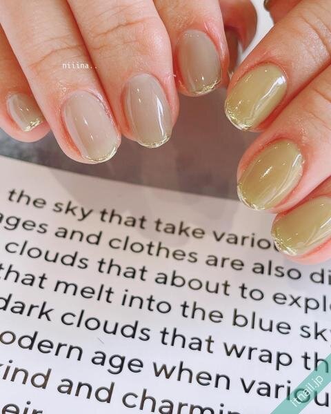 左右の爪で違う色を使ったアシメネイルは、定番のデザインです。ナチュラルに作るためには、淡い色やくすみカラーでまとめるのがおすすめ!さらに色同士が近いと、より自然なアシメネイルになりますよ♡