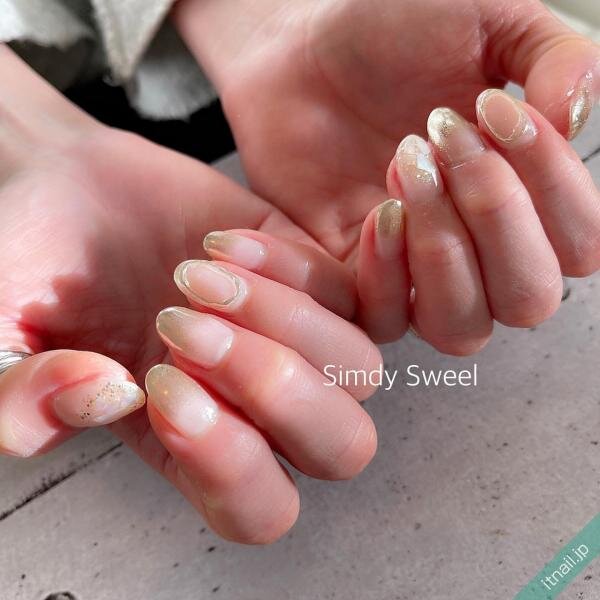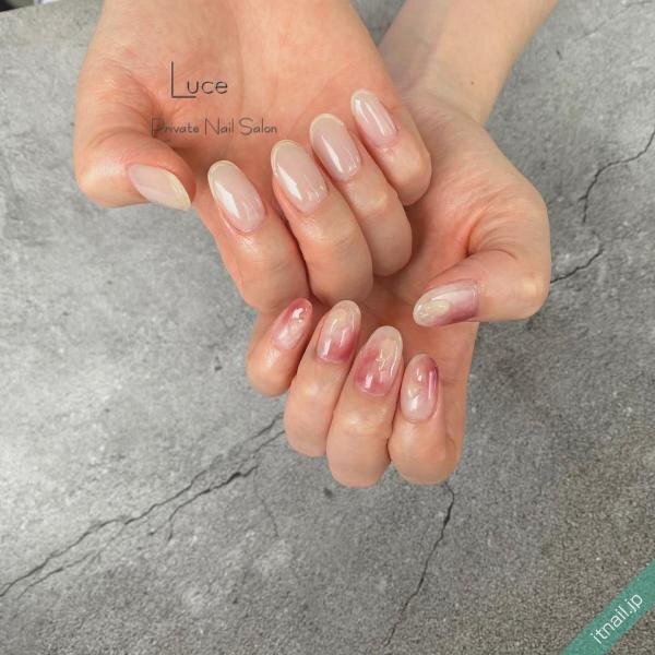 淡いデザインをプラスしたナチュラルなアシメネイル
