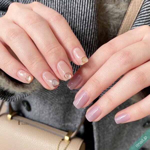 色は同じだけど取り入れ方が違う♡ナチュラルなアシメネイル