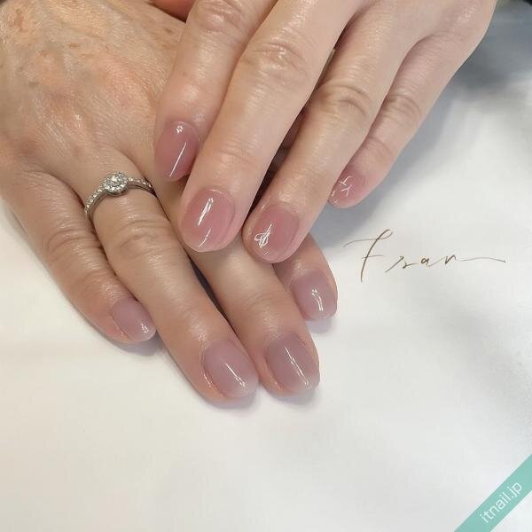 ナチュラルな雰囲気を好む方や、オフィスネイルにもおすすめなのが、くすみ感のあるピンクネイル。透け感たっぷりなカラーは、みずみずしいツヤ感も楽しめます。ショートネイルスタイルも清潔感があって好印象ですね。