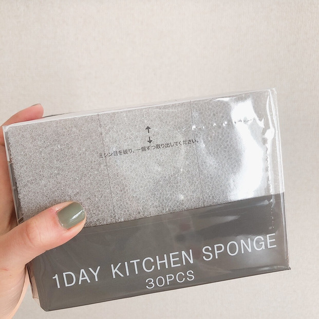 今回は、ニトリマニアのおちびさんがニトリで愛用している、30個入りの「毎日とりかえキッチンスポンジ」。