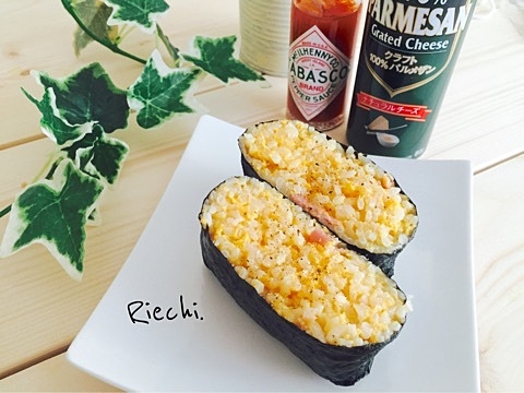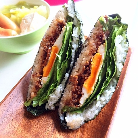 ロコモコ風おにぎらず。お腹すいちゃいますね…