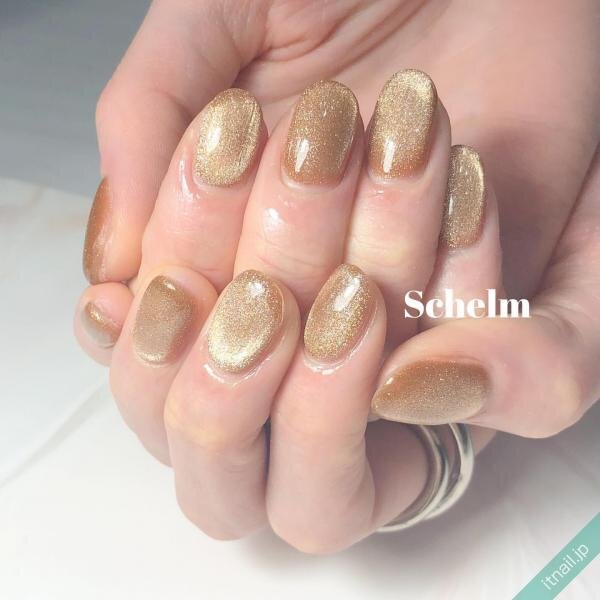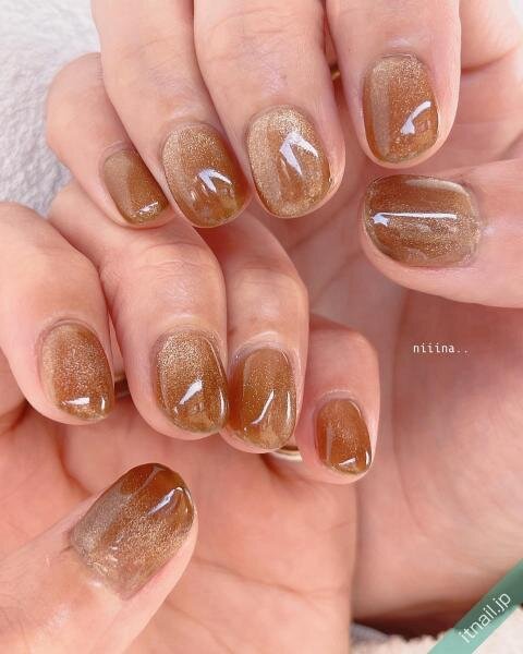 ライトブラウンが大人な印象!肌馴染みが良いので、悪目立ちしません。奥行き感と艶感が指先を優しい印象にしてくれるネイルデザインです。