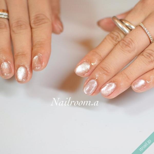 マグネットジェルのラメが中心に集まってキラキラ!ですがワンカラーで統一感があり、肌に馴染むカラーなのでギラギラした印象にはなりません。大人クールなカッコ良い指先にしてくれるネイルデザインです。