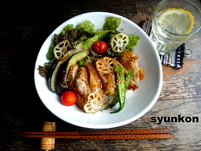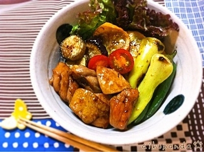 ■鶏肉と夏野菜の彩り元気な照り焼き丼