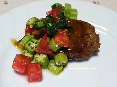 ■<夏野菜のソースのハンバーグ>