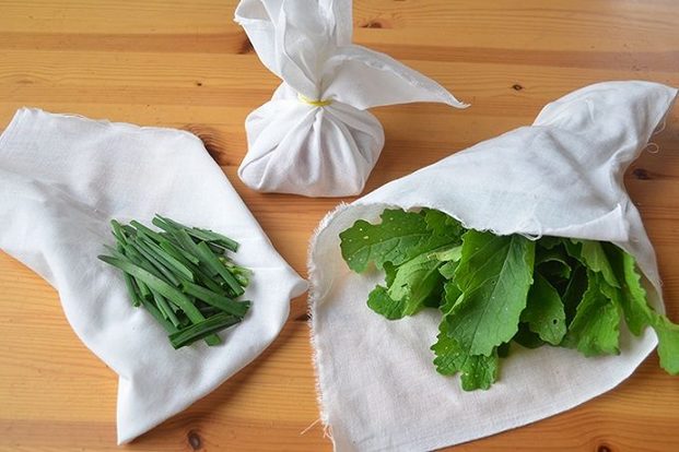 鮮度の落ちやすい野菜はもちろん、下処理や調理をしたあとの野菜も直接入れられ、冷凍も可能。洗えば3回ほどは繰り返し使え、蜜蝋ラップと同様にマルチング材にできて自然に還ります。