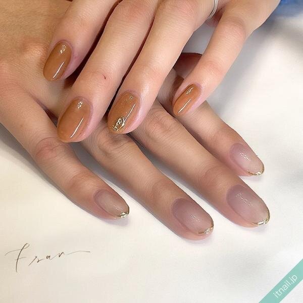 ミラーアートのちょい足しデザインで人気なのが、フレンチラインです。爪の先端に細く入れるだけで、シンプルネイルのアクセント役になってくれます。さらにニュアンス感が欲しいときは、ベースカラーを左右で変えたアシメネイルがおすすめ♡