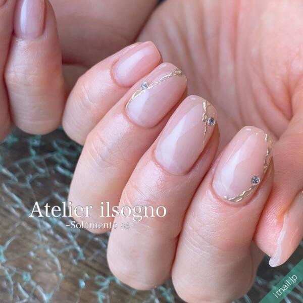爪にかかっているようにプラスされたミラーアートも、おしゃれネイルの定番♡くねくねしたラインにするだけで、ネイルデザインのワンポイントになりますし、ニュアンス感も出ます。グラデーションネイルでおしゃれ度を上げるのもGOOD!
