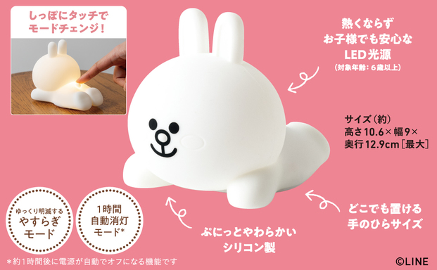 LINE FRIENDSから、お部屋ライトつきBOOKが発売。初めてのブランドブックとなる今回は、見ているだけでも癒される人気キャラクターのコニーとブラウンの同時発売。どこでも置ける手のひらサイズに、ゆっくり明滅するやすらぎモードと1時間自動消灯モードが搭載されていて、使い勝手も抜群です。