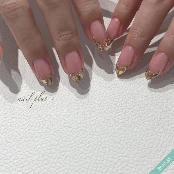 フレンチラインをしっかり深く描けば、より大人な仕上がりに。色だけで遊んで、他は定番のフレンチに忠実に従っているので、個性的なのにきちんと感もフォローしてくれます。アクセサリーいらずの強い輝きでスタイリッシュに。