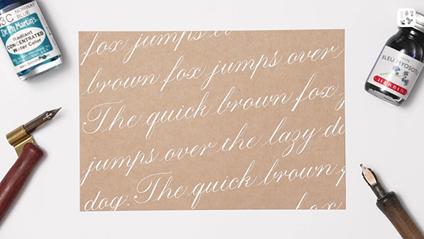 続けてペンの使い方やインクの扱い方、片付け方などを学んだら、優雅で伝統的な「カッパープレート体」の書き方へ突入!