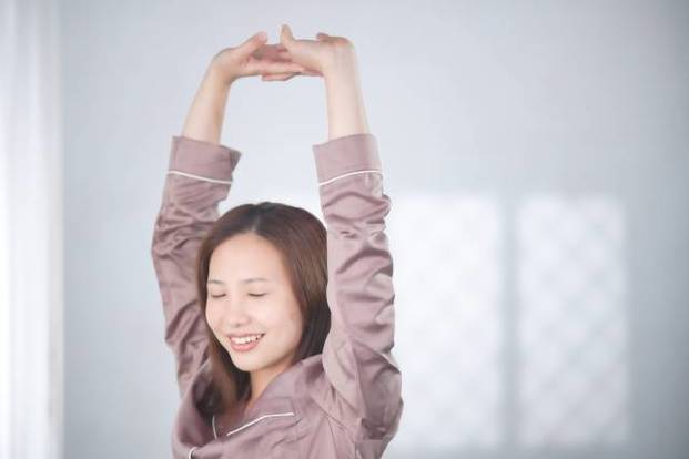 こうすると寝ている間に凝り固まった筋が伸びて、気持ちよく家事などに取り掛かれるんですよね!