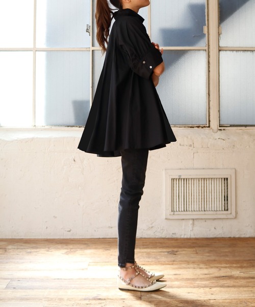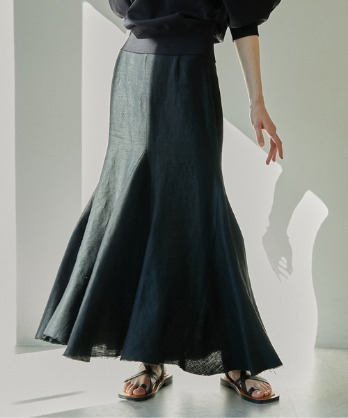 少し肌寒い時はカーデをレイヤードすれば、襟元のメロウ部分が映える着こなしが完成。真夏から秋まで長く着られそうです。