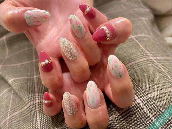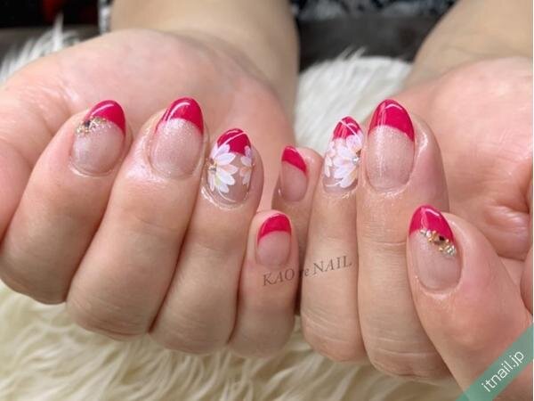 ピンクとホワイトは、可愛くて清楚に見える組み合わせでもあるので、フラワーネイルやパールをプラスして華やかに仕上げるのもおすすめ!柔らかいピンク色でお花を描き、濃いめピンクを引き立てましょう♡