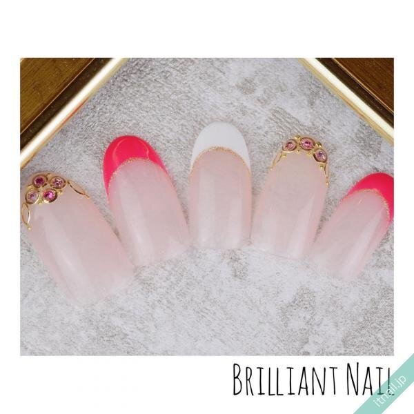 蛍光色のような濃いめのピンクを使いたいときは、フレンチネイルがおすすめです。爪の先端だけなので、不思議とすっきり見えるのが嬉しいポイント!初めての方でもチャレンジしやすいです。