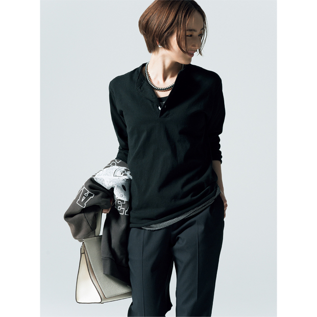 カジュアル代表ヘンリーネックを 大人バランスで楽しむ!