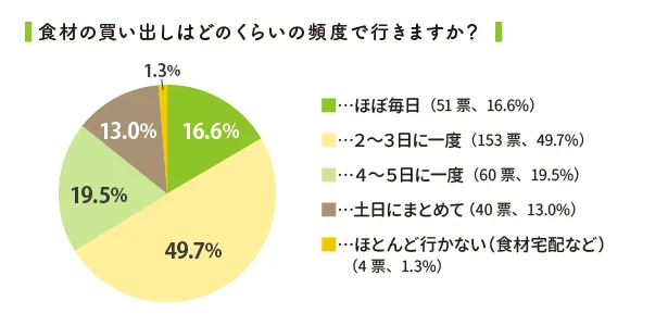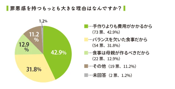 ・「平日は仕事帰りに買い物に行くと、おなかを空かせて待っている子どもに早く夕食を作れないため。献立を考えるのが面倒くさいため」