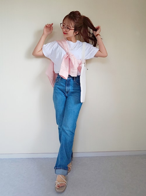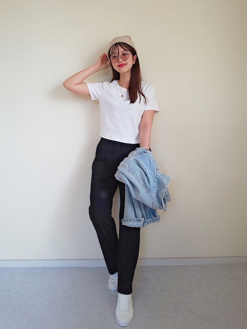 シンプルな白Tシャツもコンパクトなサイズ感だとトレンディに着こなせるので、今から買い足すならミニTがおすすめ。