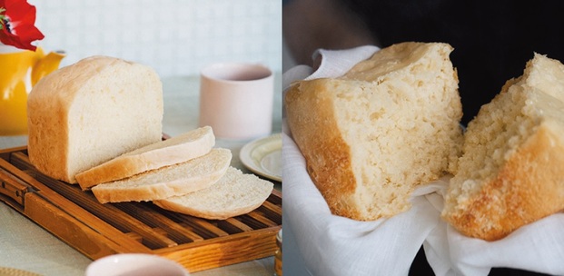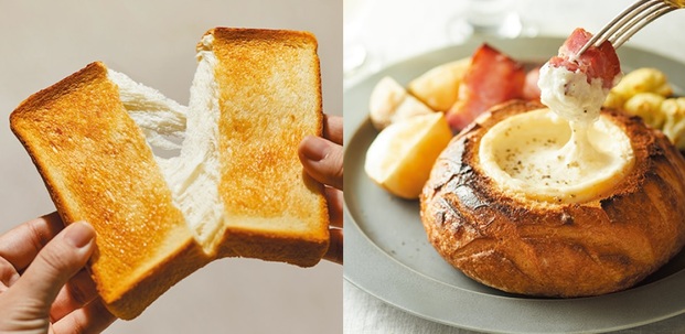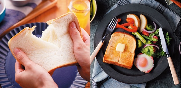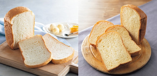 左・生食パンを焼く〈リッチ パン・ド・ミ〉メニュー。右・〈低糖質パン〉メニューでは糖質約60%オフを実現。